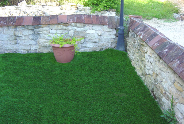 Les petites surfaces sont prévues pour le gazon synthetique. Les dalles